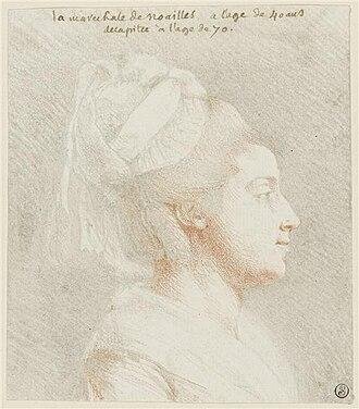 À esquerda, imagem de Catherine de Cossé-Brissac, Duquesa de Noailles, com 70 anos: tal como era no tempo em que foi guilhotinada. Para que matar uma senhora de 70 anos que não fez nada contra a Revolução?